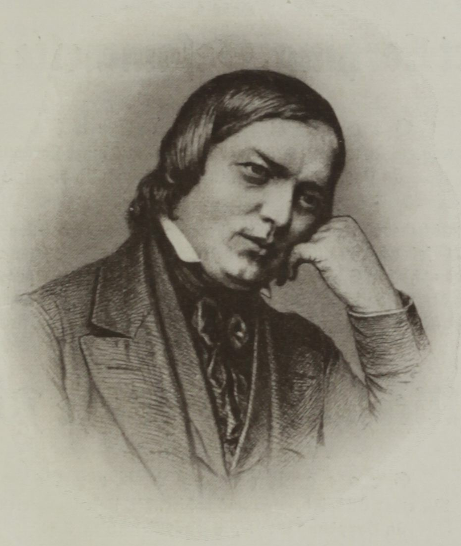 Früher Unterricht in Latein, Französisch, Griechisch und Klavier und dadurch Interesse an Wort- und Tonkunst gleichermaßen. Weiterer Klavierunterricht beim Zwickauer Domorganisten Johann Gottfried Kuntsch (1777–1855) und beim Leipziger Klaviervirtuosen Friedrich Wieck (1785–1873), dem Vater seiner späteren Frau Clara (Heirat am 12.9.1840). Der Einsatz einer Übemaschine brachte eine zeitweilige Lähmung der Hand und verhinderte eine Pianistenkarriere, woraufhin sich Schumann vermehrt dem Komponieren widmete. Außerordentlichen Erfolg hatte Schumann mit der von ihm 1834 gegründeten Neuen Zeitschrift für Musik. Die sonst so glückliche Ehe des Künstlerpaares wurde immer wieder durch Spannungen zwischen dem Komponisten und der durch Hausfrauen- und Mutterpflichten behinderten Pianistin getrübt. 1854 verschlechterte sich sein Gesundheitszustand (vermutlich progressive Paralyse), nach einem Suizid-Versuch wurde Schumann in einer Privatheilanstalt in Endenich untergebracht.